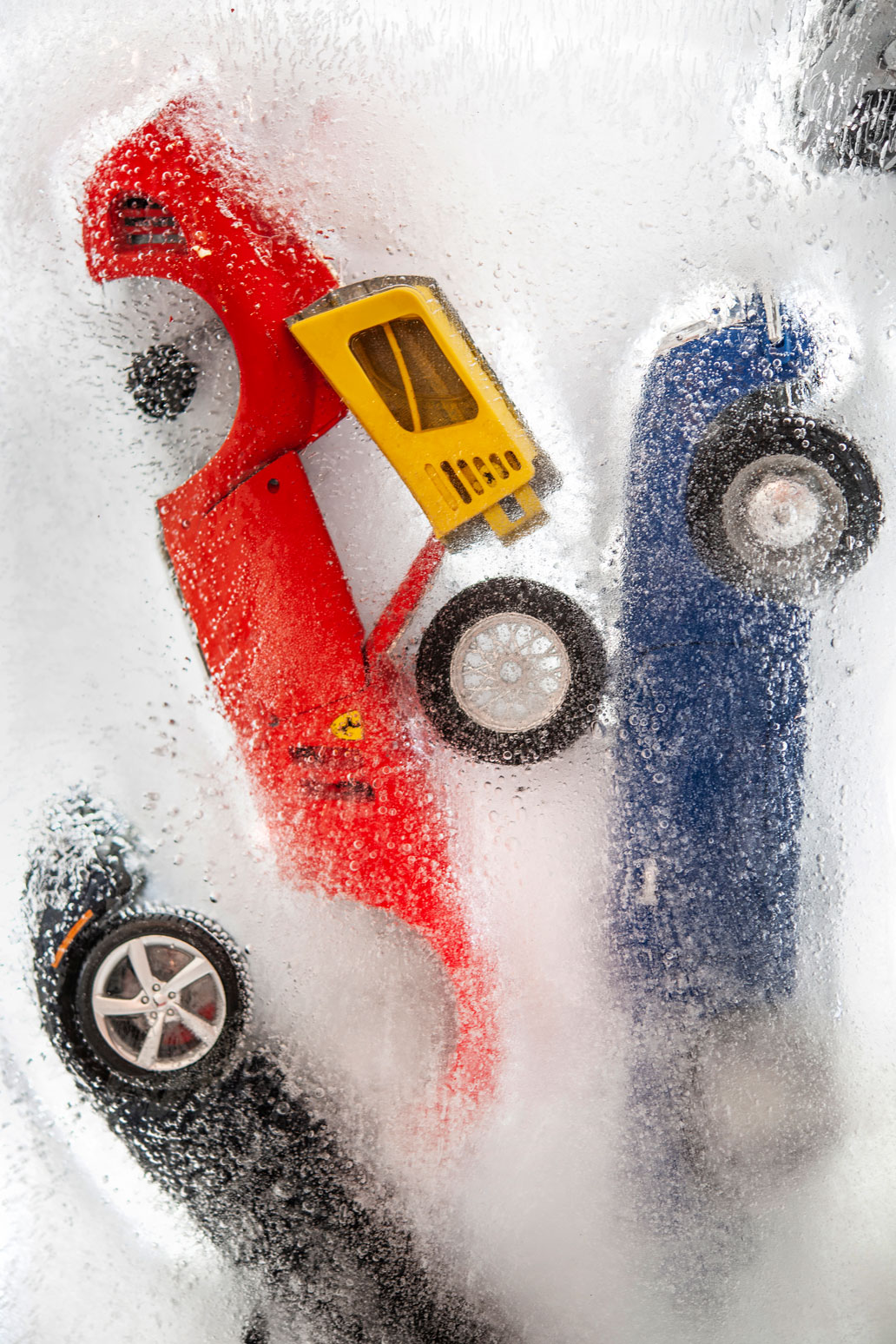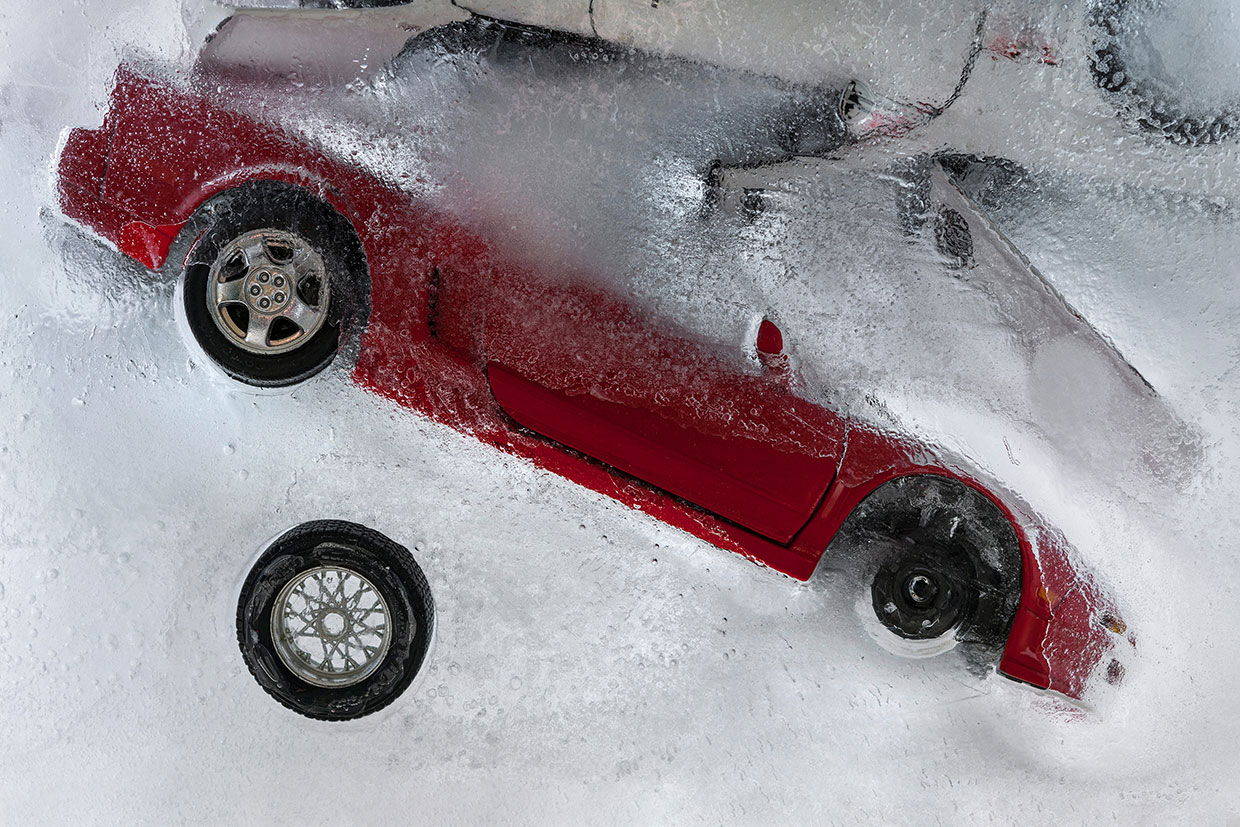 As with the passage of time, the ice, the carrier of the ephemeral nature of things, will be liquefied and melted, I photograph the frozen cars aiming to capture the border where the momentary and the eternal meet. This paradoxical pairing of the expansion of the fleeting moment of time, is in turn trapped in the lens and re-registered as part of our memory and identity. This moment that can never be repeated unaltered but leaves on us such indelible marks and feelings, that it impresses upon us and follows us until the end.